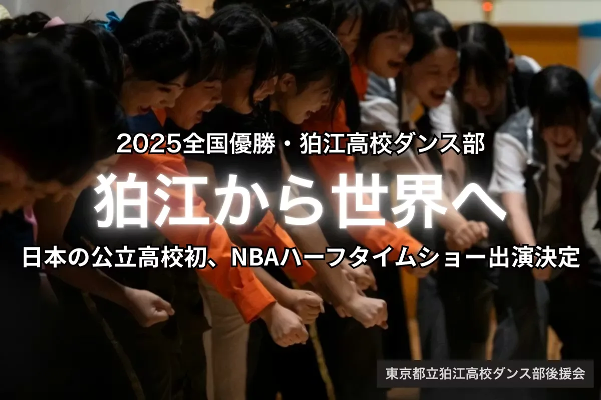 東京都で最も小さな狛江市から世界最高峰の舞台へ。日本の公立高校では史上初となるNBAハーフタイムショーに出演いたします。この挑戦は都立狛江高校ダンス部が2026年3月22日、アメリカのフェニックス・サンズ本拠地にて行われる試合でダンスパフォーマンスをするための渡航費・活動費を募る取り組みです。